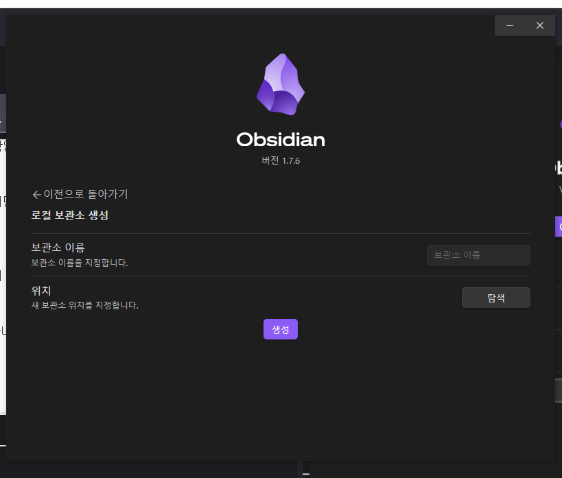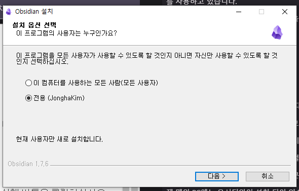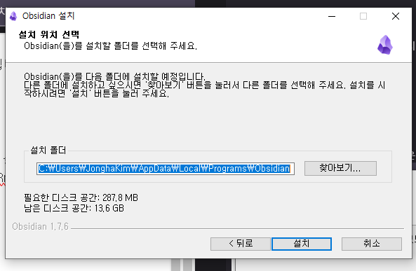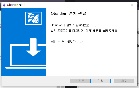 그리고 마침 누르시면 옵시디안이 실행 될 겁니다.